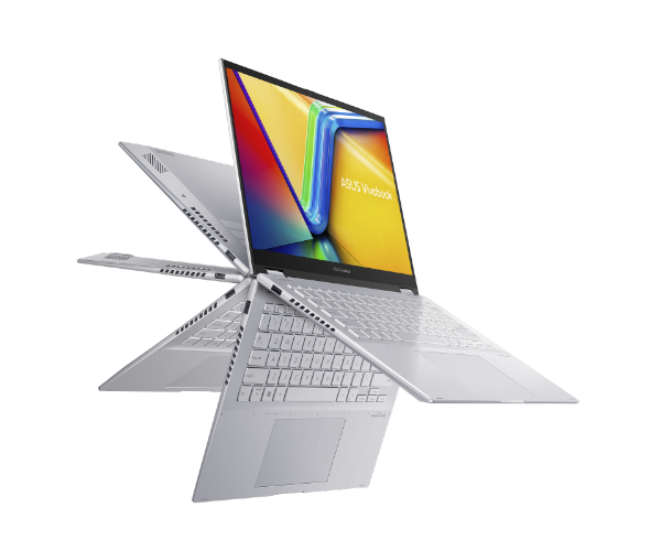 ה-VivoBook S 14 Flip מציע עיצוב הפיך בן 360 מעלות, המאפשר להשתמש במחשב כמחשב נייח או כטאבלט. המסך מגע בגודל 14 אינץ' ברזולוציית Full HD+ מספק חוויית שימוש אינטואיטיבית ונוחה, בין אם לצפייה, עריכה או הזנת נתונים.