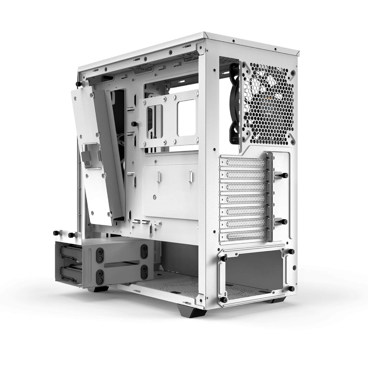 המארז מגיע עם שני אוורורים בעיצוב Pure Wings 2 בגודל 140 מ"מ בחזית ובגב, המעניקים זרימת אוויר יעילה ושקטה לקירור רכיבי המחשב. תמיכה במגוון כונני אחסון 3.5" ו-2.5" מאפשרת גמישות בהרכבת המחשב. עם 7 חריצי הרחבה, ניתן להתאים את המארז למגוון רחב של רכיבים ולהרכיב מחשב עוצמתי ומתקדם.