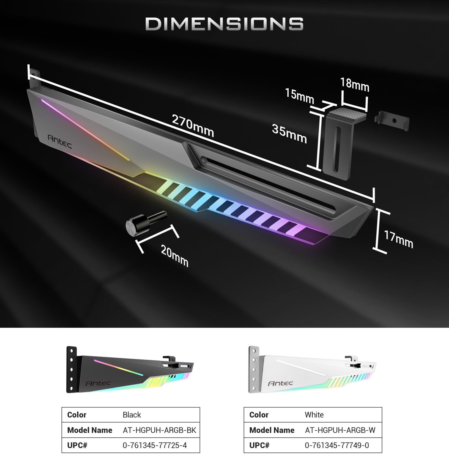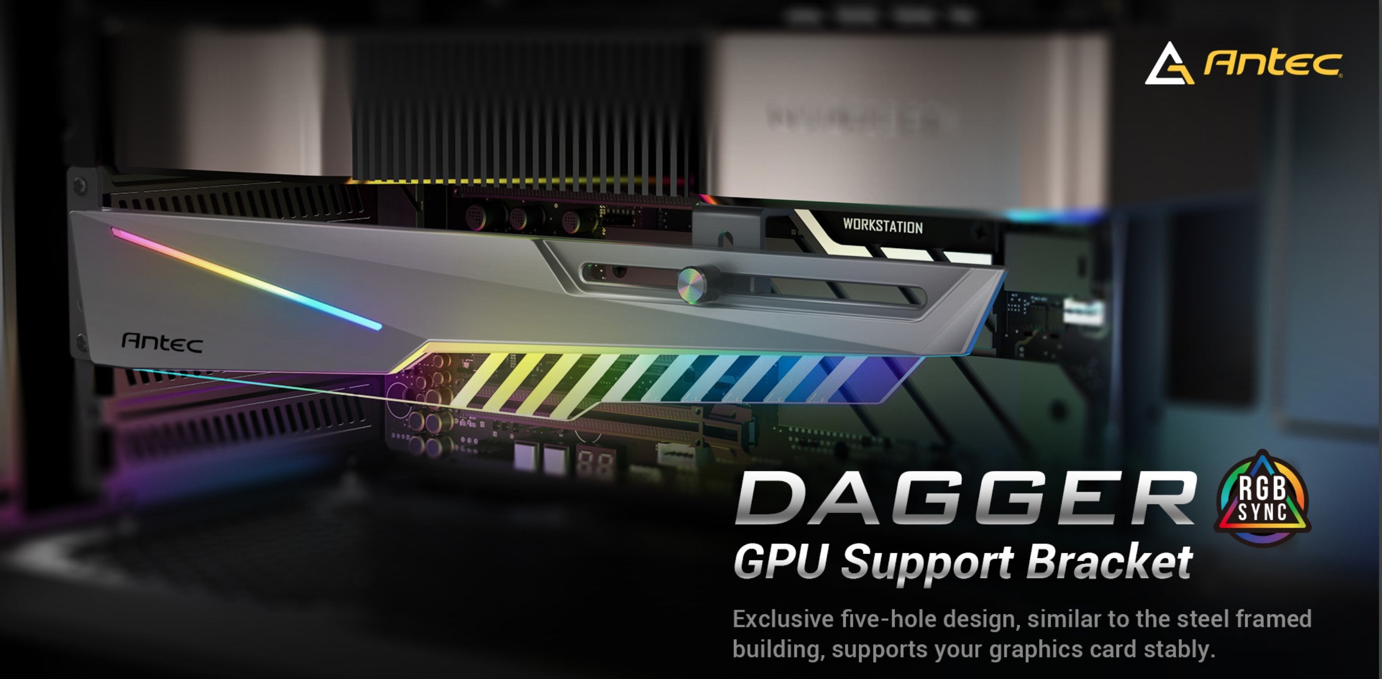- תומך לכרטיס מסך ANTEC GPU Holder Dagger Black RGB תומך לכרטיס מסך ANTEC GPU Holder Dagger Black RGB
